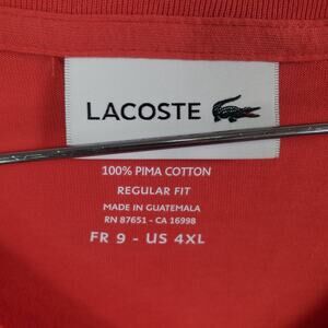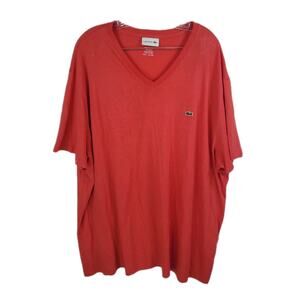 Lacoste T Shirt Mens Size 9 (4XL) Regular Fit Red V Neck Short Sleeve Logo Pima