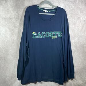 Lacoste T-Shirt Mens Size 4XLB Navy Blue Graphic Print Long Sleeves Relaxed Fit Preppy