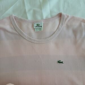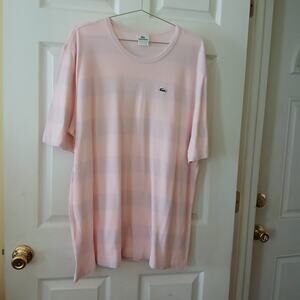 Lacoste T-Shirt Men's 9 Light Pink Striped Short Sleeve Crew Neck Preppy Casual