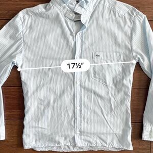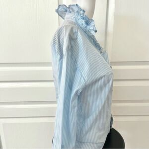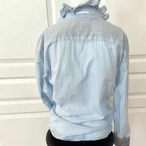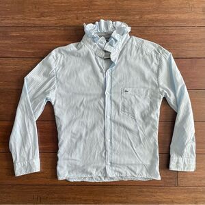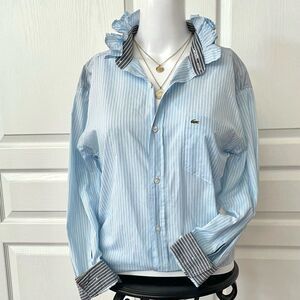 Lacoste UpCycled Handmade Blue Striped Ruffle Collar Button Down Shirt Size XS