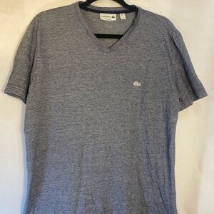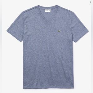 Lacoste V-Neck T-Shirt Men's Size Large Blue Fine Stripes Cotton Regular Fit Tee