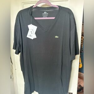 Classic black Lacoste t-shirt with V-neck. Features signature crocodile logo.