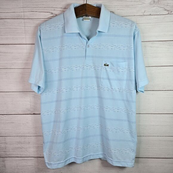 Vintage Lacoste Blue Stripe Polo Logo Shirt