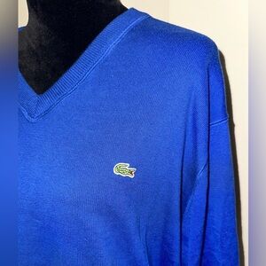 Lacoste Vintage Cotton V Neck Royal Blue Sweater - Men’s Sz 7/US XL