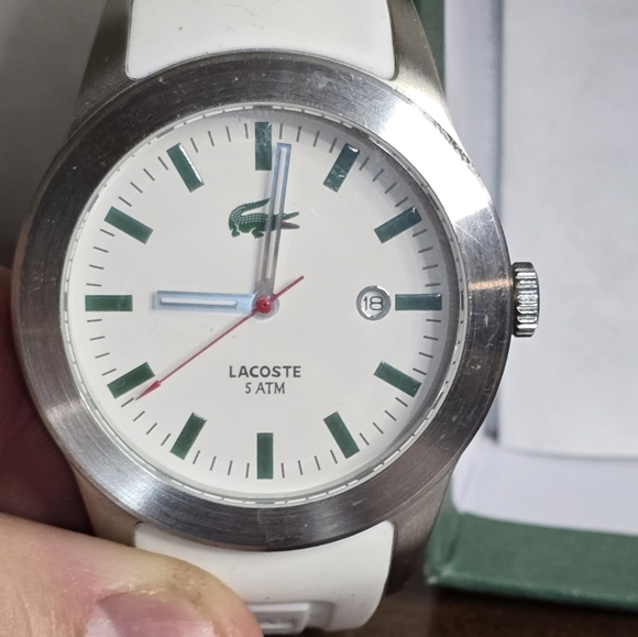 It's a Lacoste Watch white ban rubber and green in lay in the Watch it's real authentic