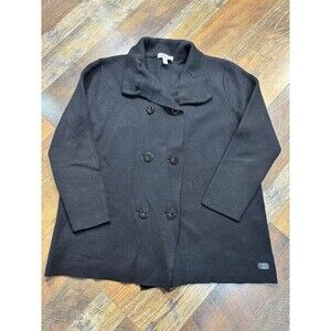 Lacoste Wmn's Ribbed V Neck Cardigan Sweater Black Sz 40 US Medium Alligator