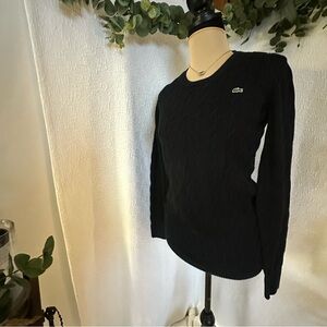 Lacoste Women Crewneck Black Cable Knit Sweater Size 40