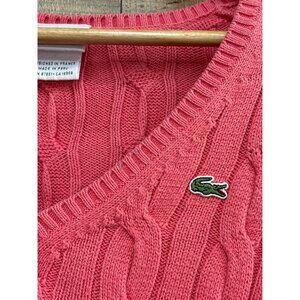 Lacoste Womens Cable Knit V-Neck Sweater Pink Size 38 US 8