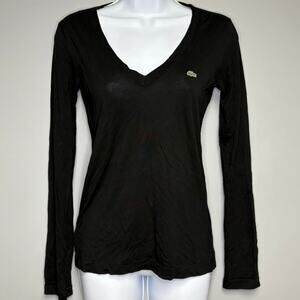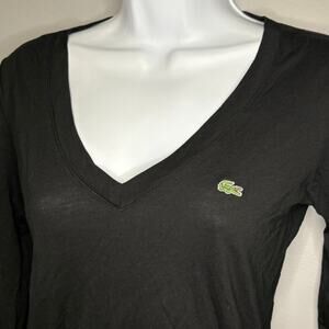 Lacoste Womens Long Sleeve V-Neck Lightweight Tee Sz 34