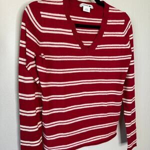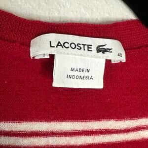 Lacoste Women's Long Sleeve V-neck Striped Sweater Merino Wool Red Cream Size M