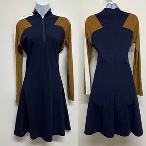 Lacoste Womens Navy Blue Zip Neck Colorblock Milano Wool Polo Dress Sz 34