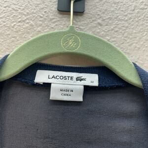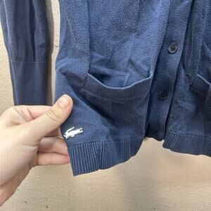 Lacoste Women’s Preppy Americana Button Up Cardigan Navy Blue Silk Back Sheer Sz 32 (French) XXS Sz 0-2 US