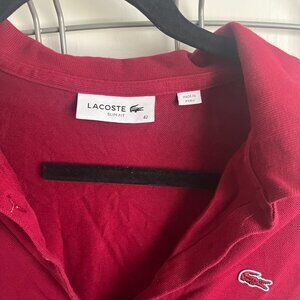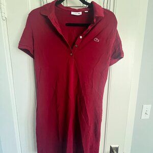 Lacoste Womens Short Sleeve Pique Polo Dress in Maroon/RED | Size 42