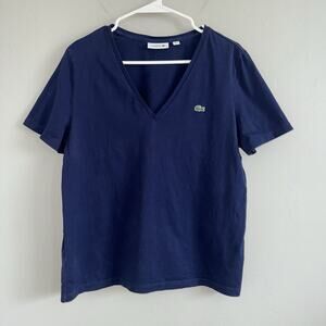 Lacoste Women’s Size 40 V-neck T-shirt Short Sleeve Navy Blue Embroidered Logo