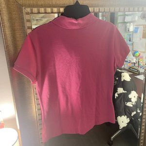 Mother of pearl button ribbed polo collar