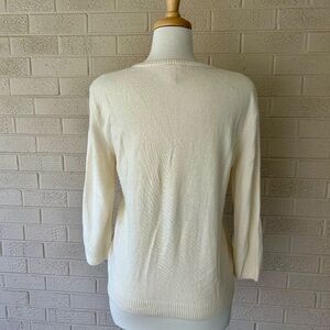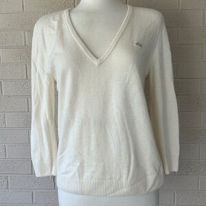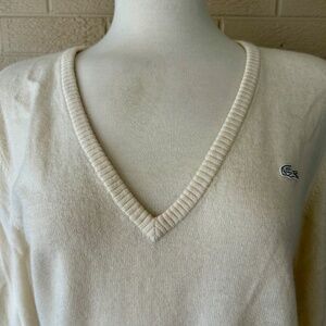 Lacoste Women's V-Neck Sweater Cream 3/4 Sleeve Deep V Neck EUC