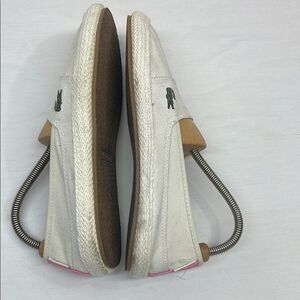 Step out in style with these Lacoste women's loafers. Featuring a sleek white design, these shoes offer both comfort and elegance. Perfect for any casual occasion.