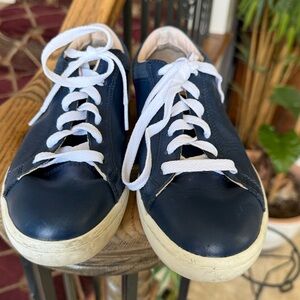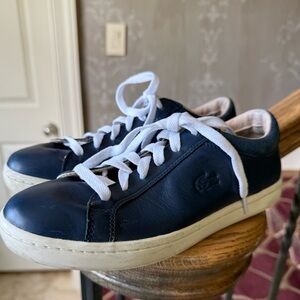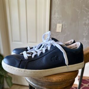 Lacoste ladies, leather, navy sneaker very good condition size 7 new laces