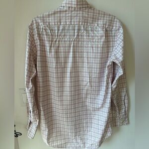 Lacoste white and pink purple plaid button-up long sleeve shirt. All buttons present.