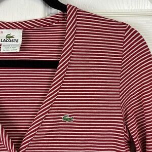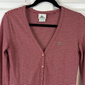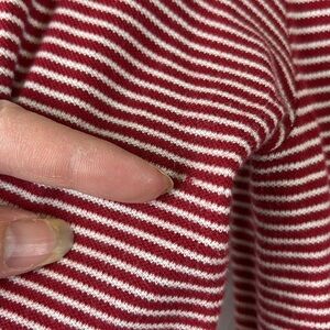 Excellent condition red and white striped button down cardigan ! One very tiny pull near right armpit but truly not noticeable.