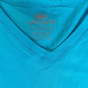 Turquoise blue lacoste t-shirt. Lightly used. Size 5 lacoste which is size large for other brands.