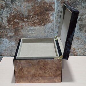 Lacquered Burl Walnut Veneer High Gloss Finish Memorial Keepsake Box Memento Tray