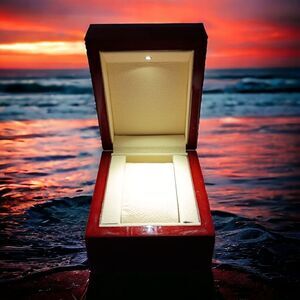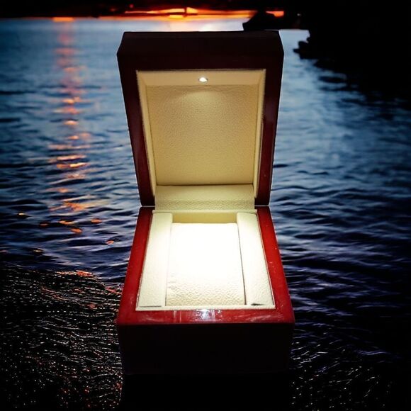 Lacquered Watch Box EMPTY Case Holder Lights Up Woodgrain Square Unbranded. Condition is pre-owned with VERY MINOR surface scratch. Very hard to see, but it's not perfect, I want the buyer to be aware. Unbranded. Lights up when opened. Measures about 4.5" x 3.5" x 3". Please see all photos for detailed condition.
