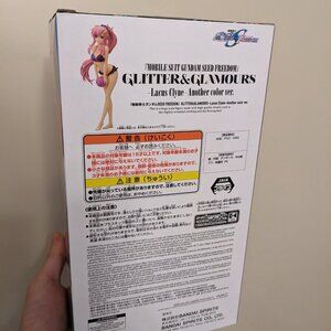 This is a new and unopened Japanese anime figurine of Lacus Clyne from Mobile Suit Gundam SEED and its sequels... in particular, the box says Mobile Suit Gundam SEED Freedom, which is the movie sequel to Mobile Suit Gundam SEED and Mobile Suit Gundam Destiny. This figure depicts Lacus in a bikini... even though that never happened in the movie. The box says "This is a large scale figure made with high quality details, such as the slightly-wrinkled clothing and the flowing hair."