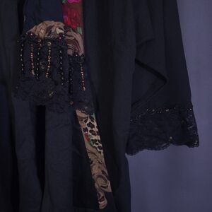 Lacy After Noon Open Front Cardigan Size Large WhimsiGoth Vintage 80s beaded