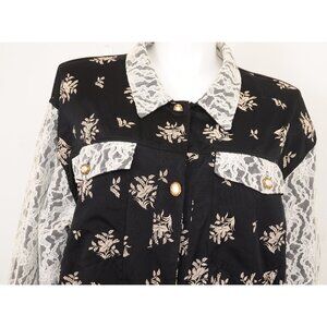 Lacy After Noon PLUS 2X Floral Lace Pearl Button Down Shirt Blouse Made in USA