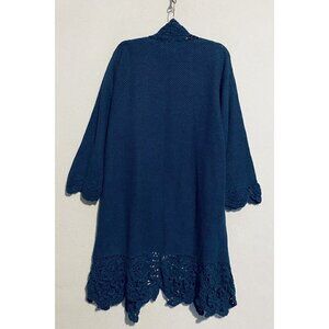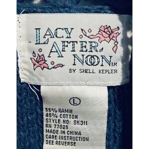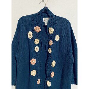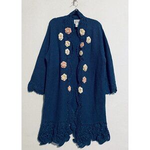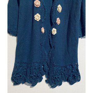 Lacy Afternoon Sweater Womens Large Blue Crochet Rose Cardigan Cottagecore