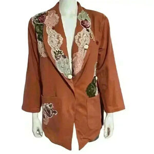 Lacy Afternoon by Shell Kepler Vintage Embellished Terracotta Blazer Size Small
