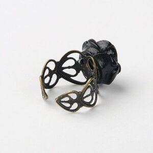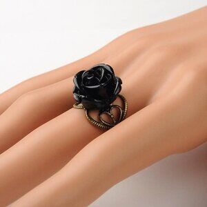 Lacy Bronze Victorian Style Black Rose Flower Lucite Cabochon Adjustable Ring