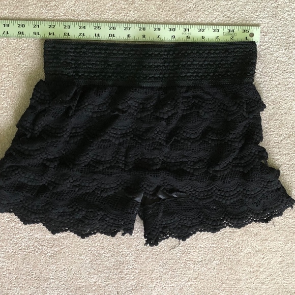Black lacy ruffle shorts. One size, bur appear to be Small. Stretchy waistband.