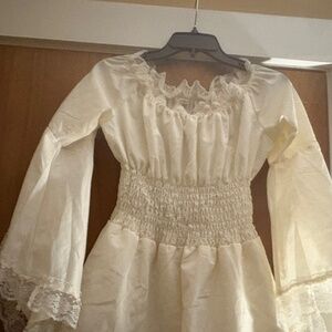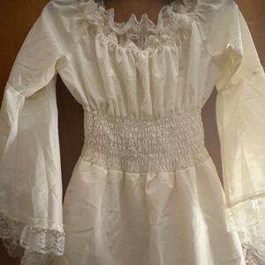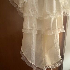Lacy dress High low tiered could be pirate costume or Victorian costume size medium M cinched waist off the shoulder cream white color