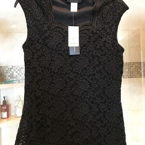 DONATING SOON, if interested, buy today. This brand new, elegant/classy tank is sleeveless and has a lace overlay. Scalloped neck