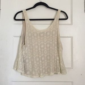 Creme colored lace tank top (lined so it isn't see-through). It fits almost like a crop top on me and I'm 5'3"