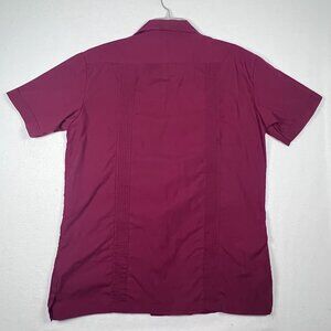 Lada Mens Med Maroon Button Up Shirt Hawaiian Theme Pockets Embroidered