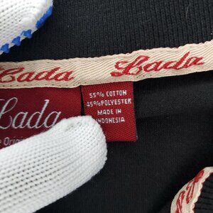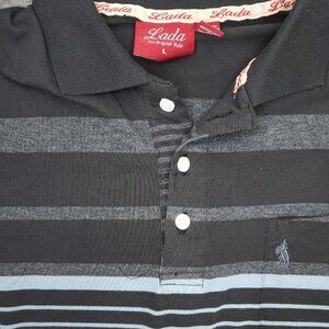 Lada Polo Shirt Mens Large Black Original Style Pocket Short Sleeve Striped