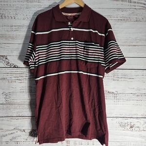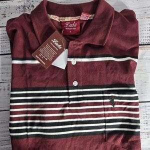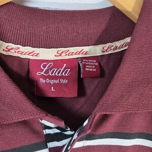 Lada The Original Style Burgundy Striped Colorblock Polo Shirt Mens Sz L
