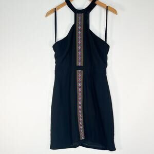 Ladakh for Lulus Sonoma Embroidered Trim Black Halter Sheath Mini Dress
