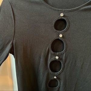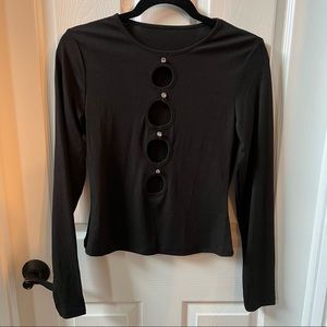 Shein Ladder Cutout Fake Button Long Sleeve Tee