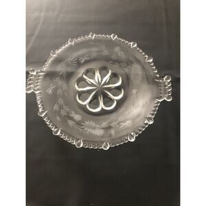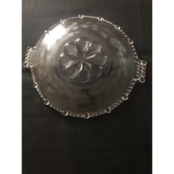 Laden City Glass Cake Plate 11” Vermillion Clear Floral Etched Dessert Plate