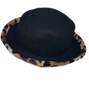 Ladies 100% wool Y2K Bowler felt hat, tan black animal print