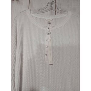 Ladies 1x Cason Waffle Knit Henley Top White Long Sleeve Button Up Casual