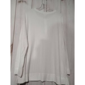Ladies 1x Cason Waffle Knit Henley Top White Long Sleeve Button Up Casual