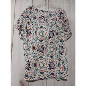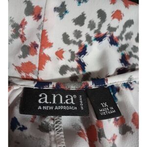 Ladies 1x a.n.a Women's White Patterned Blouse Top Short Sleeve Casual