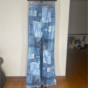 Two piece top and pants. Very comfortable. In great condition non snags, holes, rips. Both top and bottom are size Small. 66% Polyester 35% Cotton.