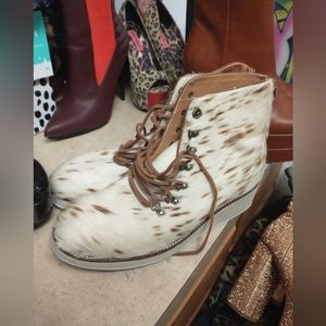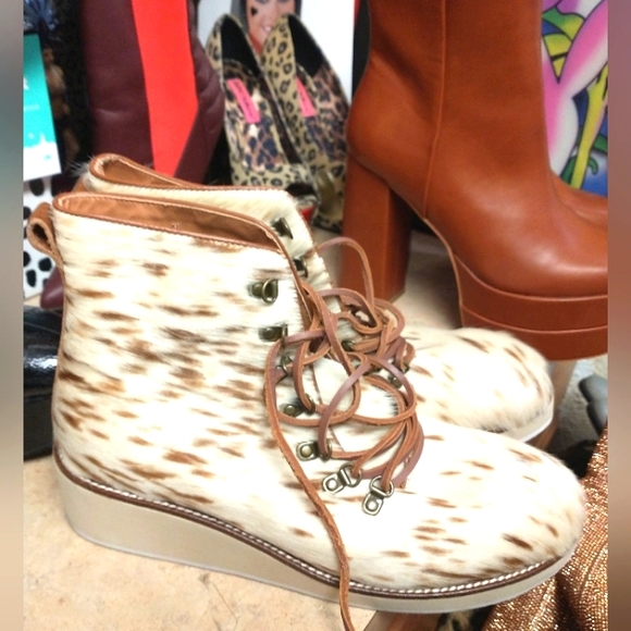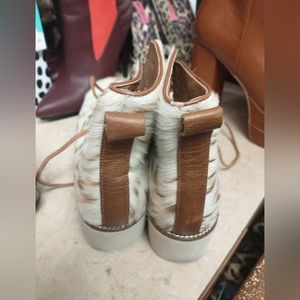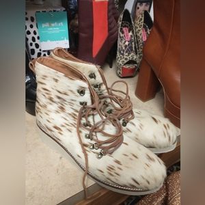 fashionable mohair, zebra print lace up shoes by ecote, size 10 m