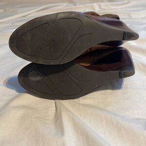 Size 6.5. Great condition. Those pics showing flaws are inside the boots from how I had them hanging up. Doesn’t show while on. 14 1/4” tall from top of wedge heel. Tallest point of wedge is 3.5”. Leather uppers.